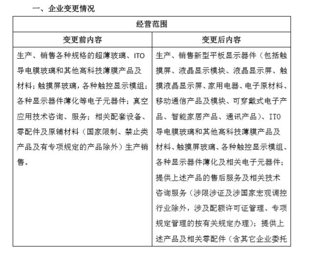 9、經(jīng)營范圍:生產(chǎn)、銷售新型平板顯示器件(包括觸摸屏、液晶顯示模塊、